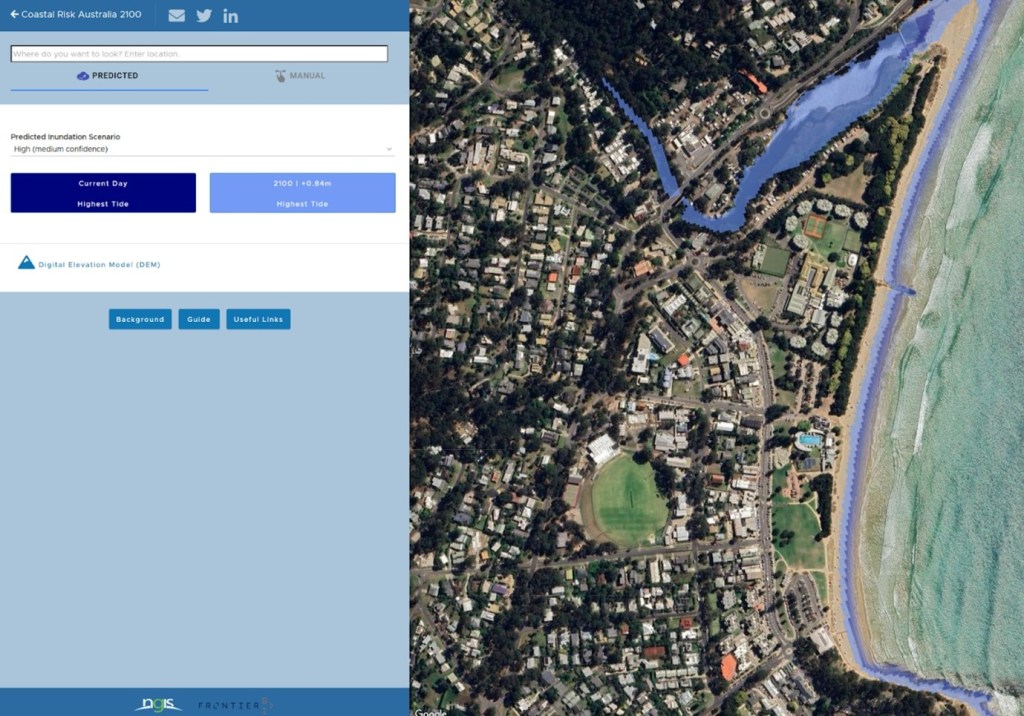 Based on the mandate co-author’s interpretation of Lorne Sea Level predictions for Earth Year 2100 https://coastalrisk.com.au/viewer (see images below). By 2100, high tide projections for Lorne indicate sea levels will be 85 cm higher than today, submerging the groyne and parts of the foreshore, as indicated by light blue shading. This estimate is based on historical warming and ice melt trends, averaging multiple climate models. It does not account for storm tides, which would exacerbate impacts.