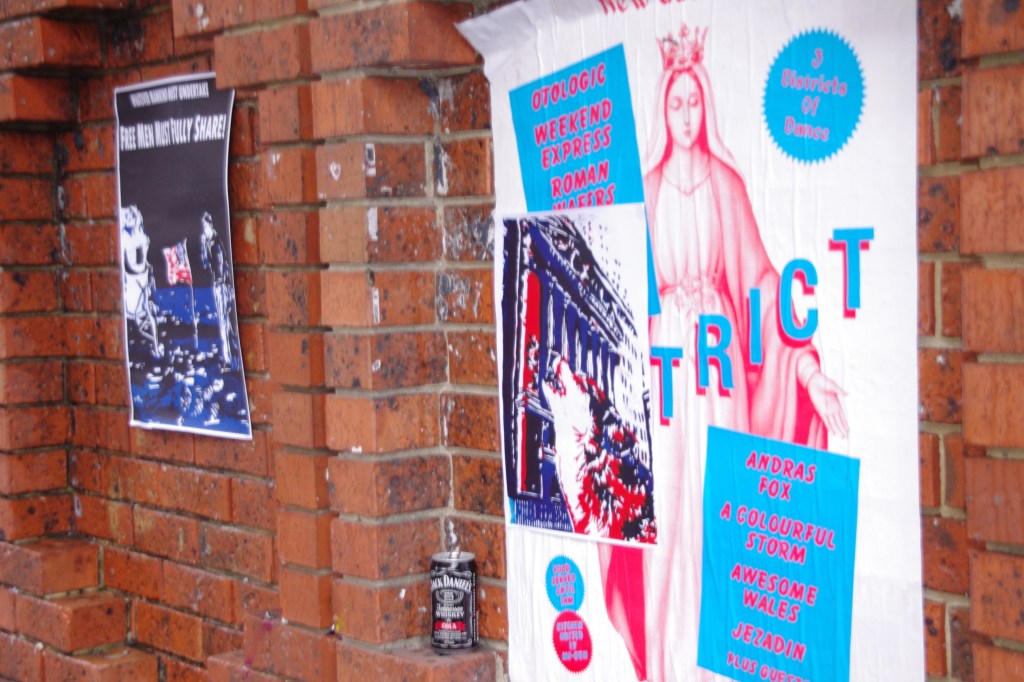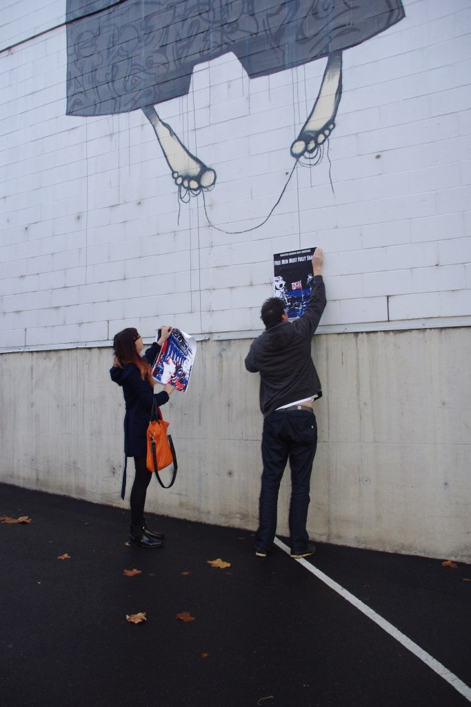 Wolves on Wall Street (2013) paste up installation of linocut prints across multiple